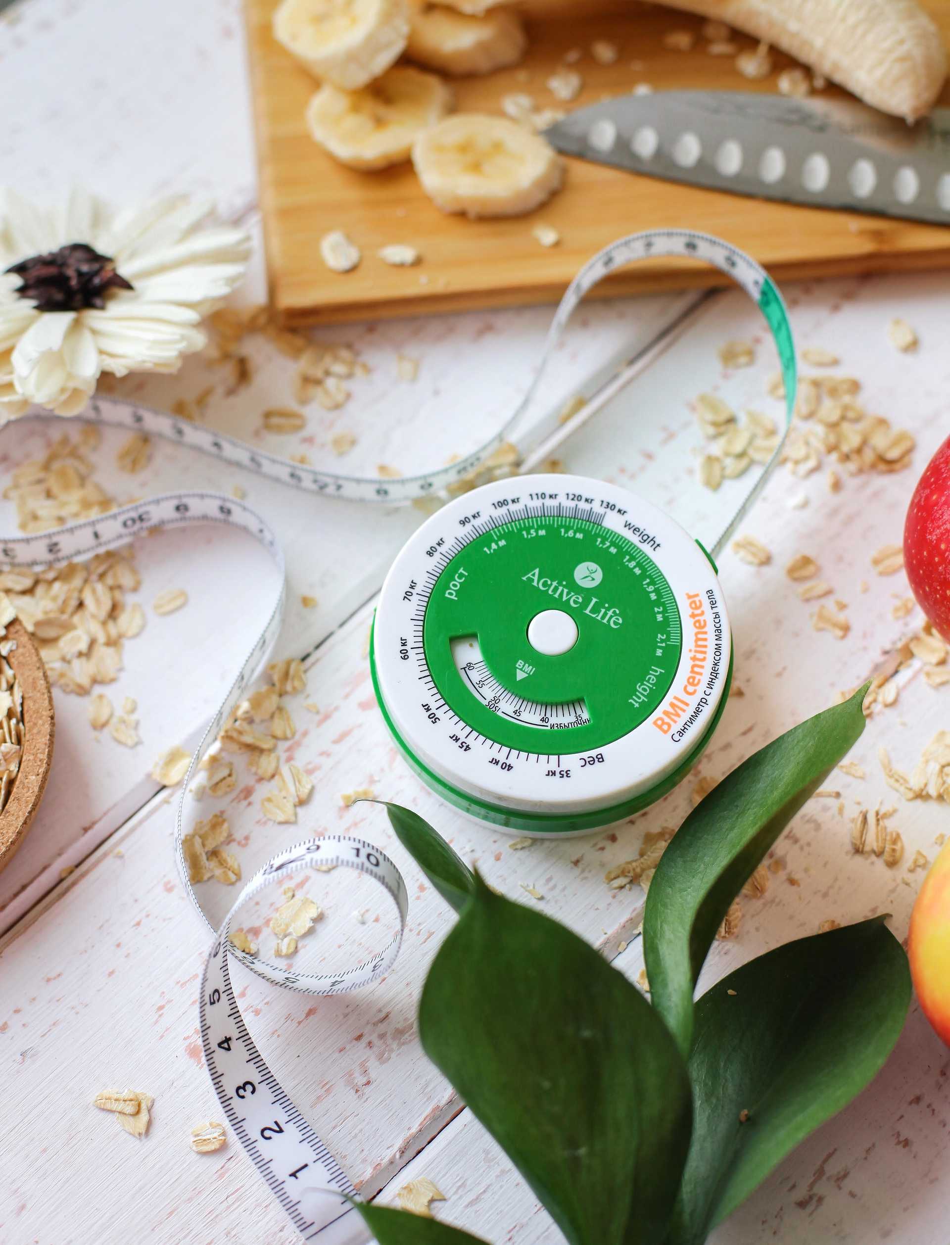 Найди на зеленой шкале (вращающийся круг) свой рост. Найди на белой шкале (корпус сантиметра) свой вес. Поворачивая зеленый круг, соедини эти показатели. В поле BMI стрелка укажет на твой ИМТ.