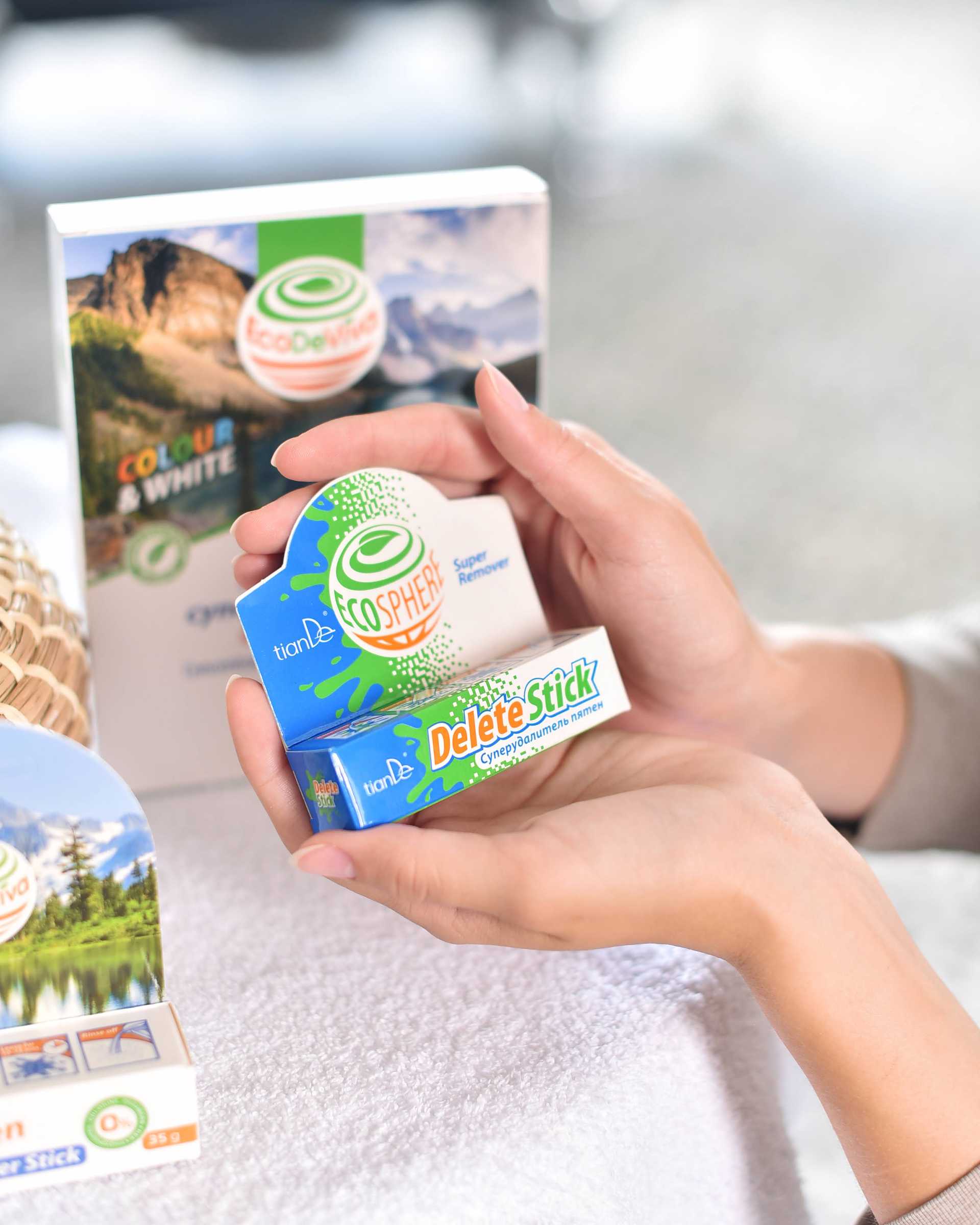 Удаляет сложные пятна от вина, крови, чая, кофе, кетчупа, губной помады, зеленки, йода, сажи, нефтепродуктов, маркеров, чернил от шариковых ручек и др. Эффективно, быстро и деликатно работает с различными видами тканей, обивок и матерчатых поверхностей. Один стик удаляет более 500 пятен размером 2 х 3 см. Приобретая это средство, вы не только заботитесь о своем здоровье и здоровье своих близких, но и вносите вклад в улучшение экологического состояния планеты. Часть средств от продажи продуктов серии «Экосфера» идет на посадку хвойных деревьев в рамках акции «Лес TianDe».