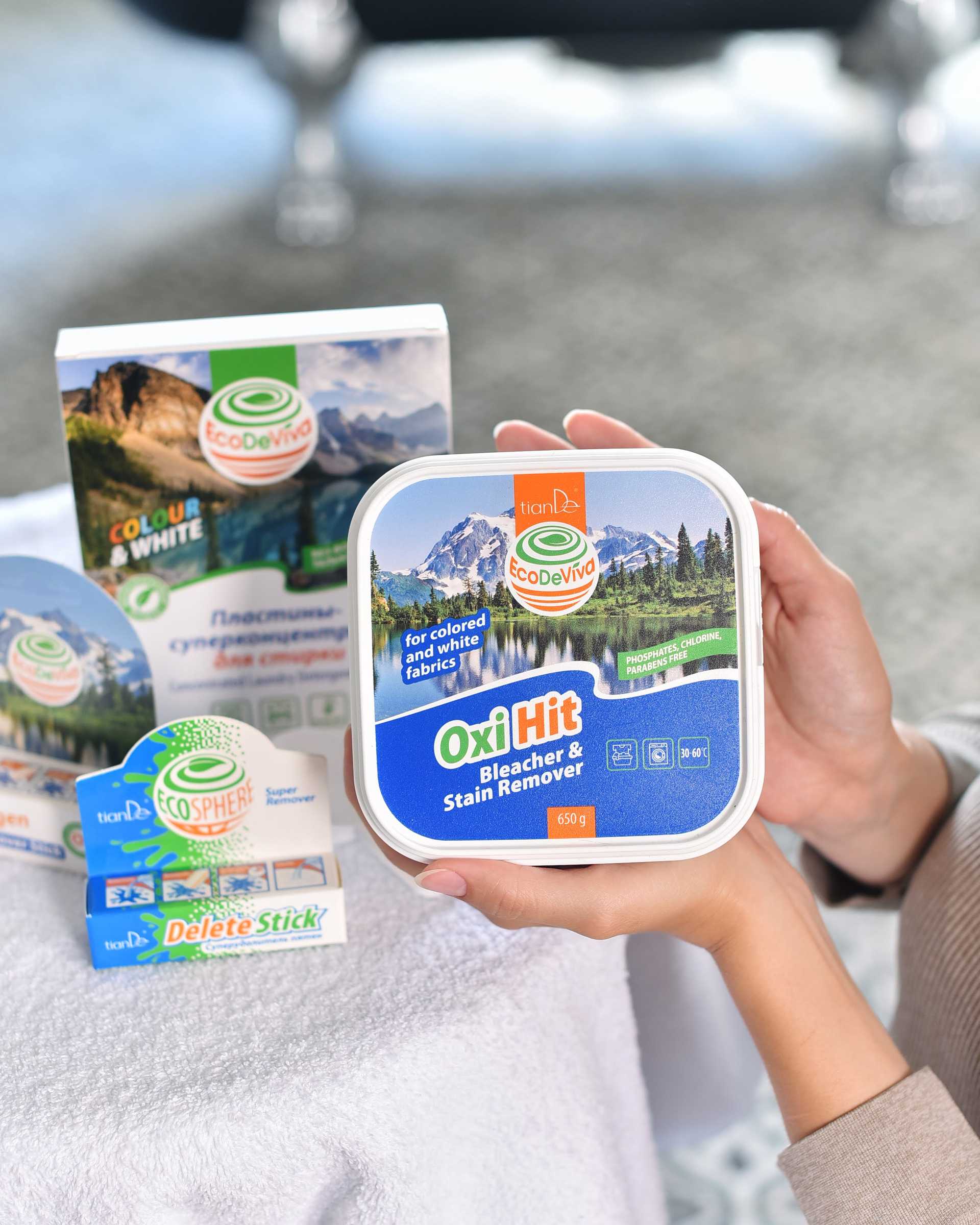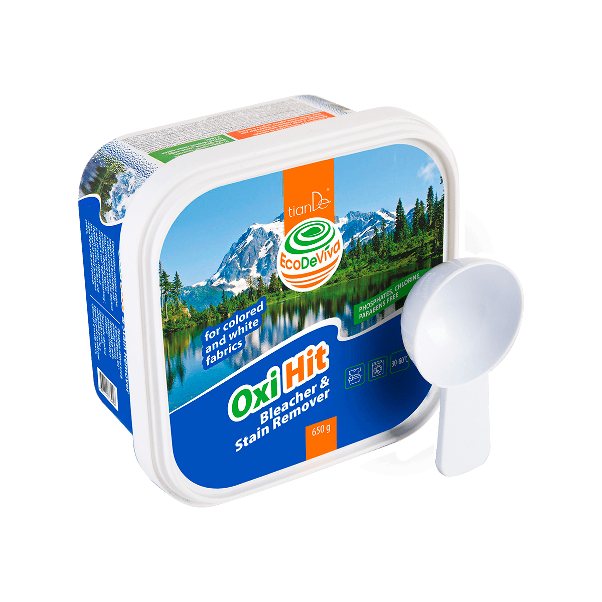 Универсальный отбеливатель-пятновыводитель для цветных и белых тканей эффективно справляется с загрязнениями и стойкими пятнами. Формула с активным кислородом, энзимами и бишофитом – природным минералом древних морей – избавит вещи от городской пыли и запаха пота на одежде, придаст им мягкость и освежит краски. Отбеливатель-пятновыводитель работает в нескольких направлениях. - Усилитель средств для стирки: отбеливает белое, устраняет серость и желтизну, сохраняет яркость цветного белья; - пятновыводитель: удаляет загрязнения с одежды, белья, обивки мебели, в том числе пятна от чая, кофе, ягод, сока, вина, травы, зеленки, крови и др.; - уничтожитель загрязнений и бактерий: стирает в воде любой жесткости, отлично выполаскивается из ткани; - нейтрализатор запаха: избавляет от запахов. Отбеливатель создается на основе природных компонентов: не содержит фосфатов, хлора и полностью биоразлагаем, а значит, абсолютно безопасен для здоровья человека и окружающей среды. Он полностью выполаскивается из тканей, не разрушает структуру ткани и не раздражает кожу. Для ручной и машинной стирки! Удобная упаковка, мерная ложка и оптимальный объем.