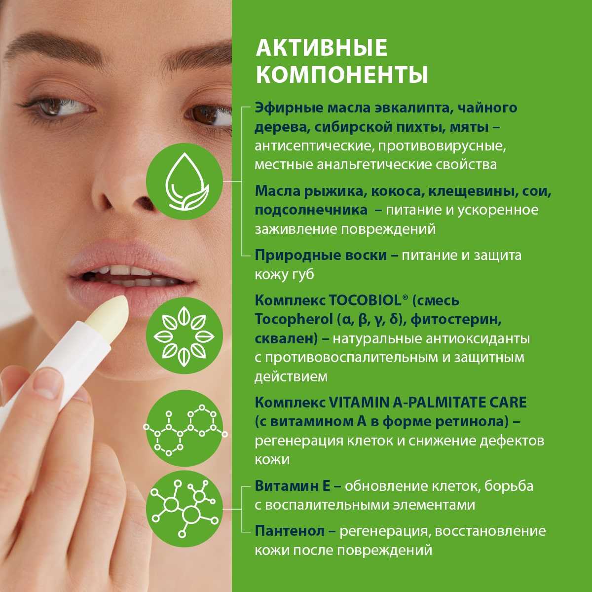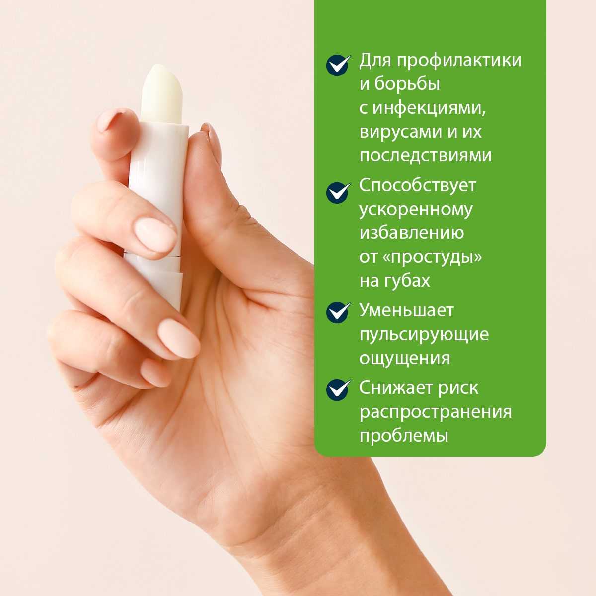 Экстрабальзам для губ разработан для профилактики и ускоренной борьбы с инфекциями, вирусами и их последствиями. Те, кто сталкивался с проблемами на губах, которые всегда «выскакивают» некстати, непременно оценят этот продукт. Экстрабальзам для губ – это средство индивидуального использования, которое: - подходит для ежедневного ухода за кожей губ в любое время года; - способствует ускоренному избавлению от неприятностей на губах; - может стать отличной профилактикой появления «проблем»; - идеально для нормальной кожи и пораженных участков; - необходимо как для мужчин, так и для женщин. Активные ингредиенты обладают антисептическими, противовирусными и местными анальгезирующими свойствами, уменьшая пульсирующие ощущения и снижая риск распространение проблем. СРОК ГОДНОСТИ ДО 12.24