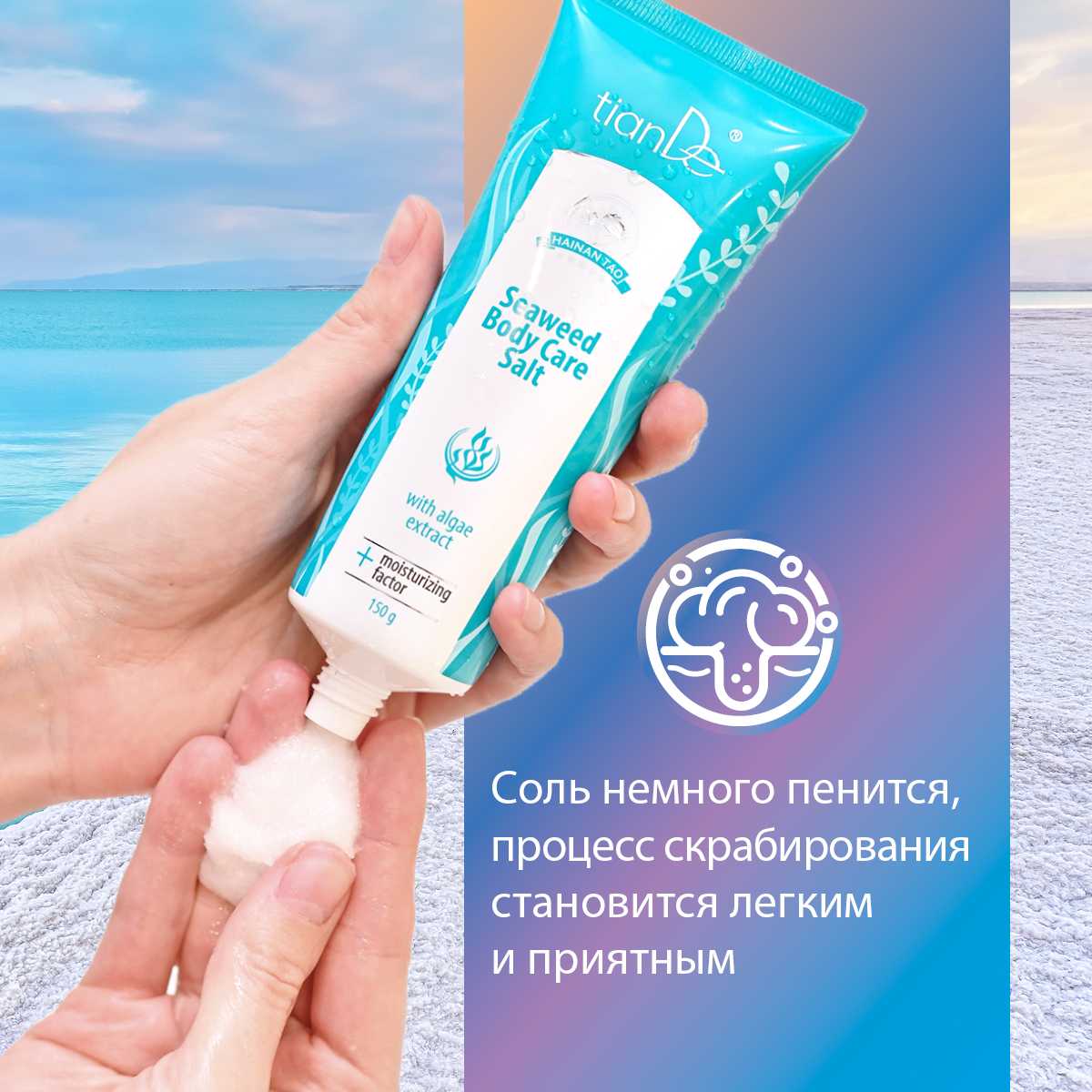 Соль для ухода за телом с морскими водорослями эффективно очищает и отшелушивает кожу, повышает ее упругость, увлажняет, смягчает и питает кожу, поддерживает ее гидробаланс. В составе средства – фукус пузырчатый (водоросль Тихого океана), отлично сохраняющий влагу в коже, насыщающий витаминами, макро- и микроэлементами.