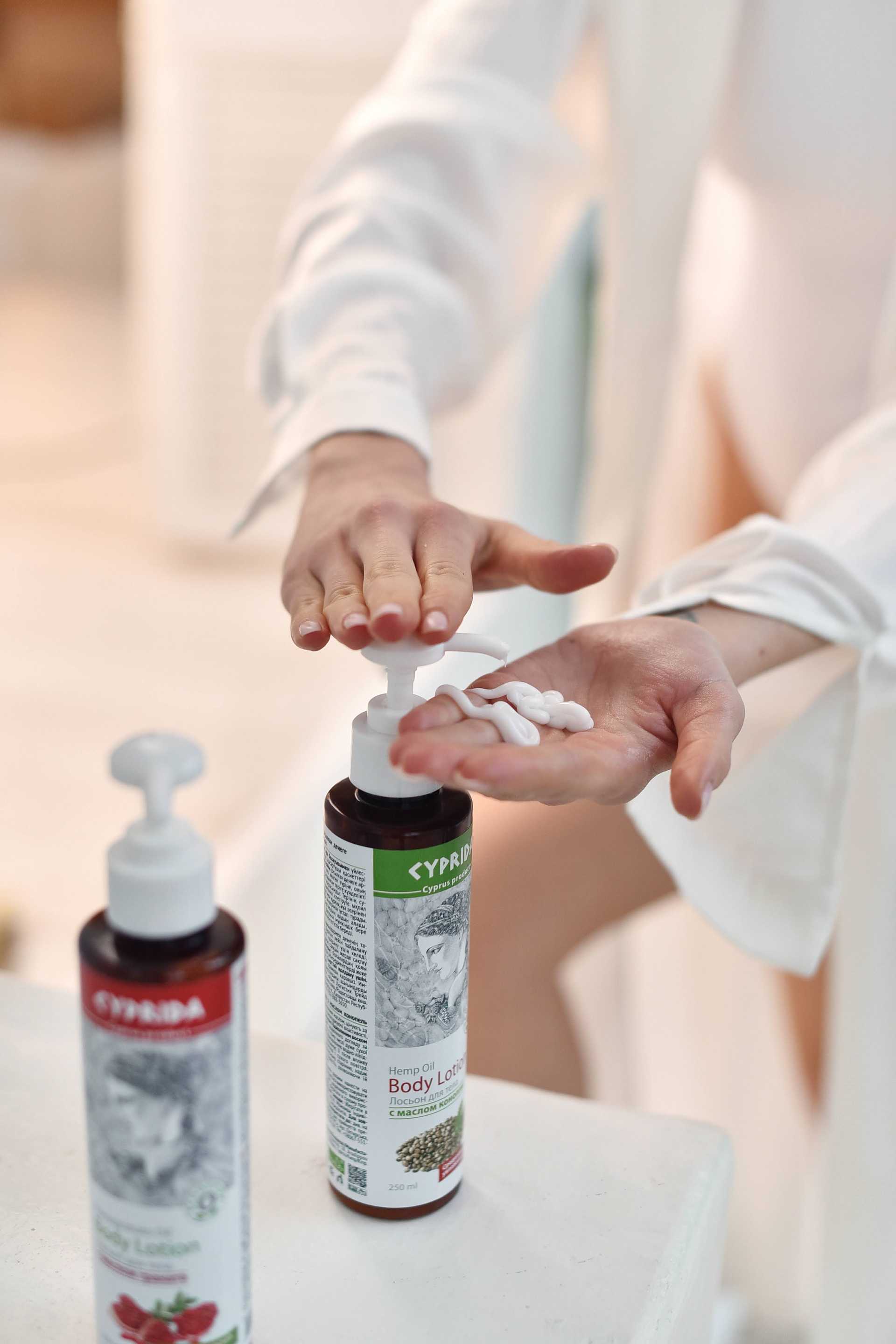 Побалуй свою кожу настоящим средиземноморским уходом, ощути тонкий аромат и потрясающую мягкость своего тела. Лосьон из роскошной коллекции «Киприда» с ценным конопляным маслом, славящимся своими смягчающими и омолаживающими свойствами, D-пантенолом и пчелиным воском подойдет для ежедневного ухода за кожей любого типа, в том числе очень сухой и обезвоженной. Он способствует восстановлению водно-липидного баланса кожи, поддерживает ее после воздействия ультрафиолетовых лучей и сухого воздуха. Препятствует преждевременному старению, придает коже эластичность и гладкость, позволяя ей оставаться совершенной. Благодаря легкой текстуре лосьон быстро впитывается, возвращая твоей коже совершенство!