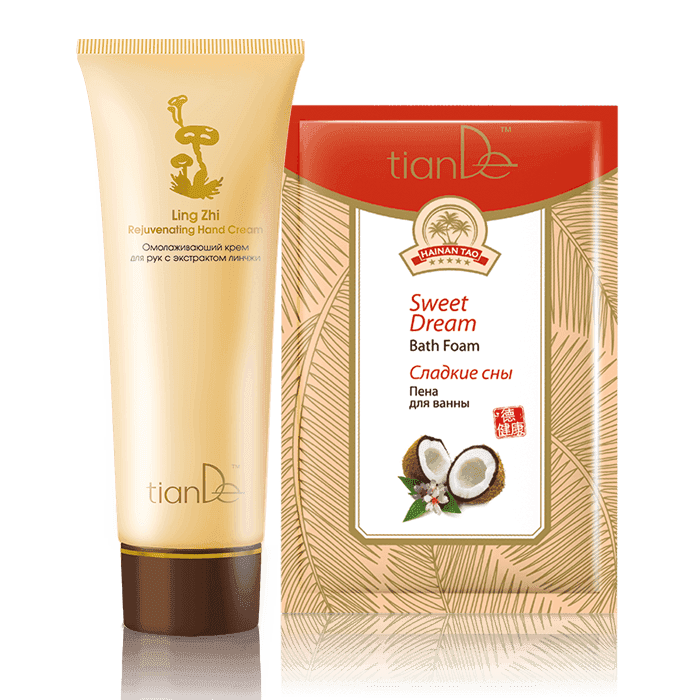 При покупке Омолаживающего крема для рук с экстрактом линчжи - в подарок Пена для ванн "Сладкие сны"