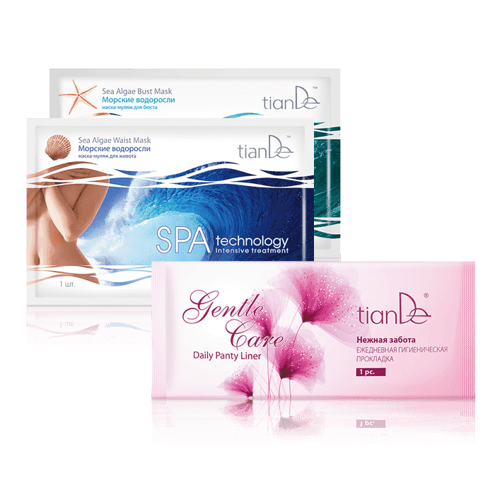При покупке Маски-муляжа для бюста "Морские водоросли" и Маски-муляжа для живота "Морские водоросли" - в подарок Ежедневная гигиеническая прокладка "Нежная забота"