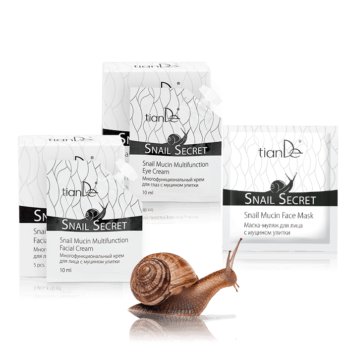 Три уникальных средства с высоким содержанием муцина улитки для красоты и молодости кожи. Подходят для кожи любого типа и возраста. 1. Многофункциональный крем для лица с муцином улитки способствует обновлению клеток эпидермиса, замедляет процессы старения кожи, увлажняет, питает, заметно улучшает внешний вид. 2. Многофункциональный крем для глаз с муцином улитки увлажняет, насыщает кожу энергией и жизненной силой, уменьшает видимость существующих морщинок и препятствует образованию новых. 3. Маска-муляж для лица с муцином улитки обладает омолаживающим действием. Успокаивает воспаления и раздражения, разглаживает кожу.