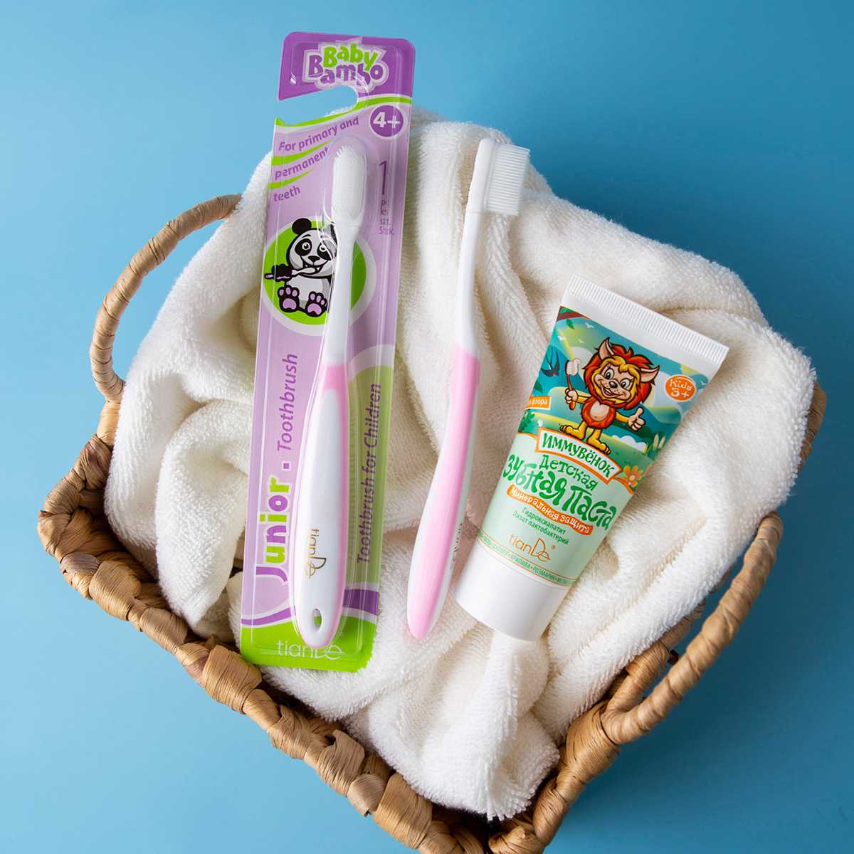 Прививаем правильные привычки с детства вместе с TianDe! Детская зубная щетка «Проденталь Джуниор» разработана для молочных и постоянных зубов. Мягкие ворсинки щетки обеспечивают бережную чистку чувствительной эмали детских зубов, а также чистку языка и десен, на которых скапливается до 90% бактерий полости рта. Зубная щетка эффективно удаляет зубной налет даже в труднодоступных местах, мягко массирует десны, обеспечивает качественную гигиену полости рта. Эргономичная форма щетки – для комфортного применения, правильной и надежной фиксации в руке. Зубная детская щетка от «ТианДэ» предназначена для детей от 6 лет, но под присмотром родителей может использоваться с 4 лет. Мягкая щетка подходит для брекетов. Для девочек, для мальчиков – зубная детская щетка понравится всем! Идеальна для зубов и зубиков! Набор состоит из 4 шт.
