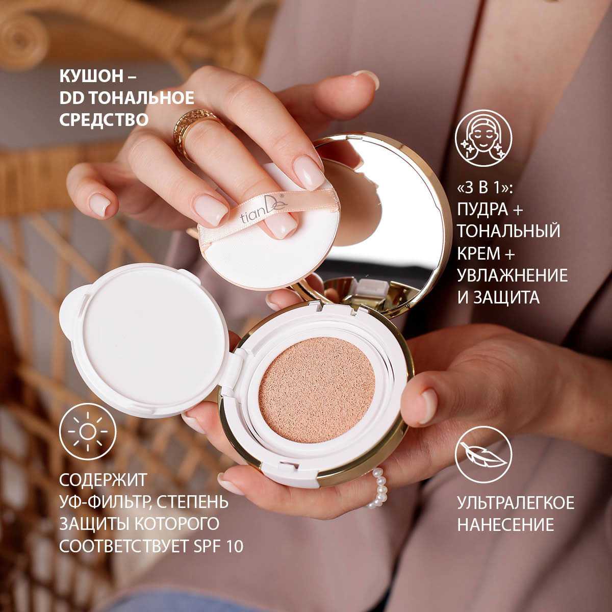 Коллекция кушонов от TianDe пополнилась новым оттенком, который идеально подойдет для светлой кожи. Он создаст теплый финиш без выбеливающего эффекта – легкую невидимую вуаль. Твоя кожа будет естественной, свежей и сияющей. Кушон от корпорации – это «умный» состав, ультралегкое нанесение, 100%-ная маскировка несовершенств и мелких морщинок, идеальное слияние с цветом кожи. Средство «3 в 1»: пудра, тональный DD-крем, увлажнение и защита. В составе этого революционного средства – активный гидрокомплекс с гиалуронатом натрия и бетаином, который интенсивно увлажняет кожу в течение всего дня. Кушон обладает антиоксидантными свойствами, а также надежно защищает от воздействия УФ-лучей.