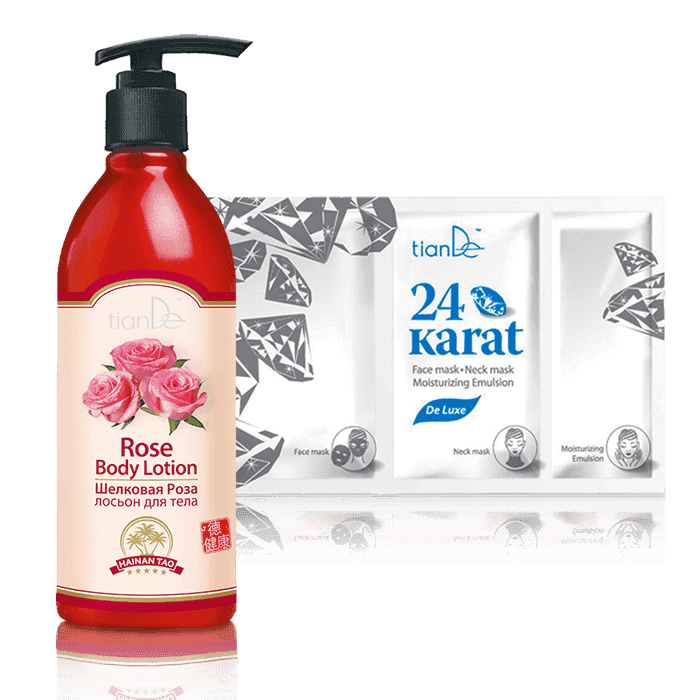 Средства для ухода за телом Hainan Tao превратят принятие душа и последующее увлажнение кожи в подлинное наслаждение. Крем-гель для душа «Алоэ» и лосьон «Шелковая роза» увлажнят и смягчат твою кожу. За покупку каждого из этих средств получай маску для лица и шеи De Luxe для трехфазной процедуры насыщенного питания и восстановления.