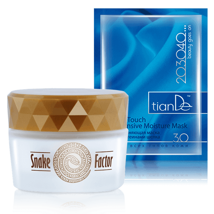 Подобно тому, как змея сбрасывает кожу, ты можешь расстаться с возрастом и несовершенствами кожи. Средства серии SnakeFactor с ценным маслом из жира змеи мамуши помогут тебе сократить видимые признаки возрастных изменений. Выбирай любой продукт для ухода за лицомиз линейки SnakeFactor – бонусом забирай увлажняющую маску с протеинами шелка из серии «203040…»! УСЛОВИЯ: Купи средство для лица из серии SnakeFactor – В ПОДАРОК увлажняющая маска с протеинами шелка из серии «203040…»! 1 = 2