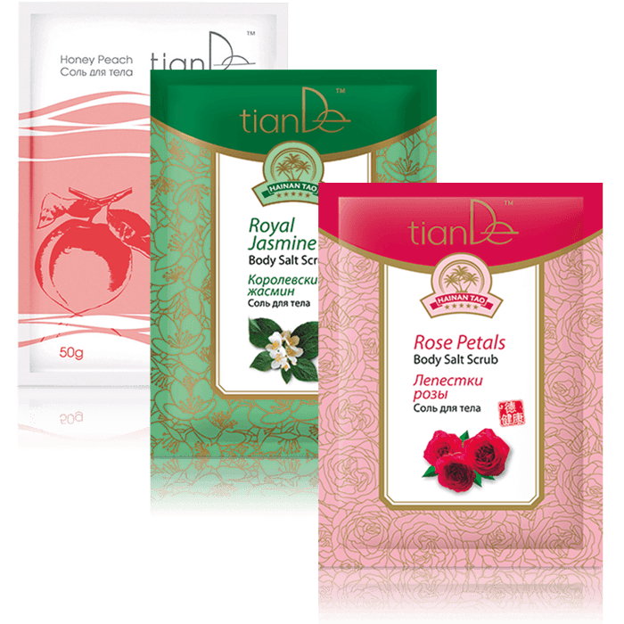 Прикоснись к своей коже… Тебе нравится эта гладкость и нежность? Сделать кожу еще более шелковистойпоможет соль для тела от TianDe из серии HainanTao. Натуральная морская соль оказывает омолаживающее действие на кожу, повышает ее эластичность, активизирует обменные процессы. При покупке двух любых пакетиков соли HainanTao соль для тела из серии SPAtechnology отдадим бонусом! УСЛОВИЯ: Купи 2 любых пакетика соли для тела из серии HainanTao – В ПОДАРОК соль для тела «Медовый персик» из серии SPAtechnology! 1 + 1 = 3