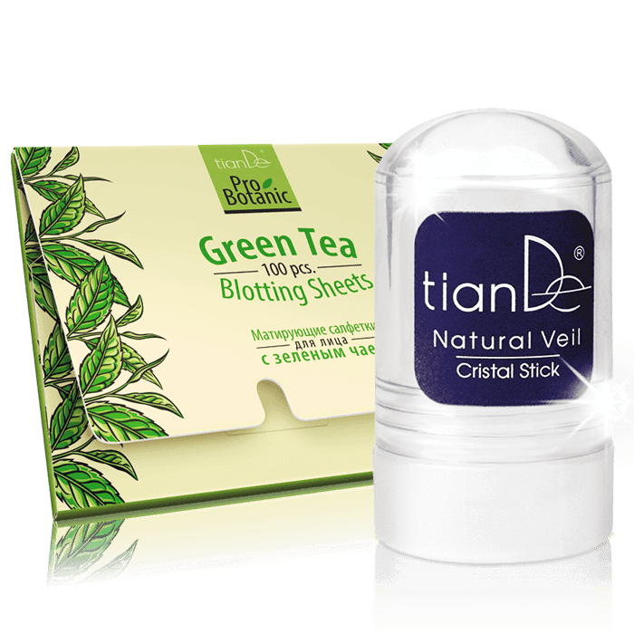 Почувствуй кристальную свежесть, которая создана самой природой! На 100% природный дезодорант, состоящий из горно-вулканического минерала алунита, защитит от запаха пота, не блокируя при этом поры. За кристальную свежесть TianDe дарит матовую кожу в одно прикосновение – матирующие салфетки с зеленым чаем! УСЛОВИЯ: Купи кристальный дезодорант NaturalVeil – В ПОДАРОК матирующие салфетки для лица с зеленым чаем! 1 = 2