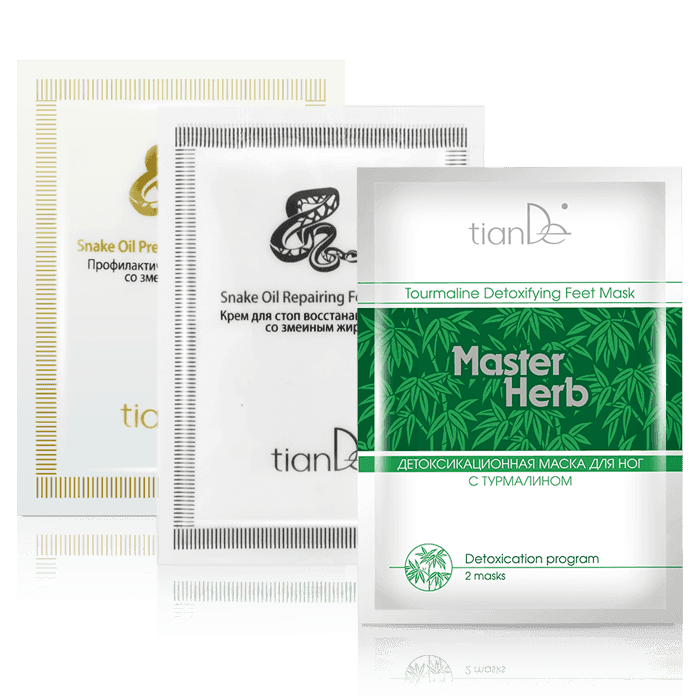 Очищение организма – важная процедура, которая поможет почувствовать легкость во всем теле. Просыпаться и радоваться каждому дню, находить силы на новые свершения и чувствовать себя при этом великолепно! Детоксикационные маски для ног с турмалином помогут тебе в этом. При взаимодействии с кожей турмалин образует микротоки, которые улучшают обменные процессы и запускают естественный процесс выведения токсинов. Позаботься об очищении организма, а о красоте твоих ног уже подумала TianDe и приготовила сразу два отличных подарка – эффективные кремы со змеиным жиром! УСЛОВИЯ: Купи упаковку детоксикационныхмасок для ног с турмалином – В ПОДАРОК 2 крема со змеиным жиром: для стоп восстанавливающий + профилактический крем для ног*! 1 = 3 * Количество товара ограниченно!