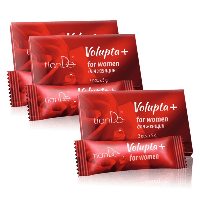 Добавьте в свою жизнь удовольствий, почувствуйте, что значит быть настоящей женщиной… Соблазн и искушение, которому так легко поддаться… Не отказывайте себе в наслаждении, живите полной жизнью! Этим летом TianDe отдает 3 упаковки Volupta+ для женщин для повышения сексуального влечения по цене двух! Условия Купите 2 упаковки Volupta+ для женщин – В ПОДАРОК третья! 1 + 1 = 3