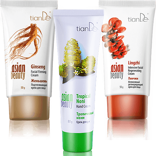 Восхищаешься красивой фарфоровой кожей азиатских женщин? Мы разгадали их секрет! Экзотические плоды со всего света помогут твоей коже обрести нежность и гладкость, вернут упругость и эластичность. Какой крем ты предпочитаешь? В серии Asian Beauty представлена широкая линейка продуктов с экзотическими компонентами. Выбирай любые два, а уход за руками из этой же серии TianDe тебе подарит! Условия Купи два любых крема для лица из серии Asian Beauty («Линчжи», «Годжи», «Мангустин», «Нони» или «Женьшень») – В ПОДАРОК крем для рук «Тропический нони» из этой же серии! 1 + 1 = 3