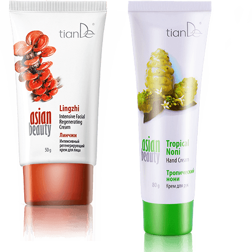 Любуешься безупречной кожей азиатских красавиц? Мы раскрыли их секрет! Серия косметических средств Asian Beauty – это люксовые ингредиенты со всего мира. Линчжи – для интенсивного питания, годжи – от преждевременного старения, мангустин – для молодости и сияния, женьшень – для избавления от морщин. Какой подходит именно тебе? Выбирай крем для лица, а о твоих руках позаботится TianDe! Условия Купи крем для лица из серии Asian Beauty («Линчжи», «Годжи», «Мангустин» или «Женьшень») – В ПОДАРОК крем для рук «Тропический нони» из этой же серии! 1 = 2 Компания оставляет за собой право изменять условия и срок проведения акций.