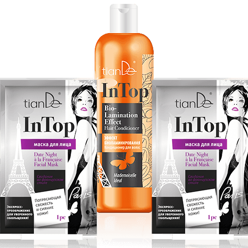 Молодость – прекрасна! А с небольшими недостатками отлично справятся средства из линейки In Top от TianDe! Здесь есть все, чтобы ты подготовилась к идеальному свиданию и лучшей вечеринке года! Шампунь и кондиционер для блестящих волос, гель для интимной гигиены, чтобы всегда чувствовать уверенность в себе. Гель для умывания, крем для лица, гель для век и ВВ-основа для безупречного тона кожи. В подарок за полноценную заботу о себе ты получишь экспресс-уход за кожей – сразу две маски для лица «Свидание во французском стиле» из этой же серии! Условия Купи одно средство In Top на выбор (шампунь, кондиционер, гель для интимной гигиены, гель для умывания, крем для лица, гель для век, тональная ВВ-основа) – В ПОДАРОК две маски для лица «Свидание во французском стиле» из этой же серии! 1 = 3 Компания оставляет за собой право изменять условия и срок проведения акций.