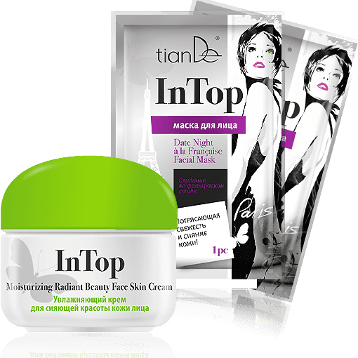 Молодость – прекрасна! А с небольшими недостатками отлично справятся средства из линейки InTop от TianDe! Здесь есть все, чтобы ты подготовилась к идеальному свиданию и лучшей вечеринкегода!Шампунь и кондиционер для блестящих волос, гель для интимной гигиены,чтобы всегда чувствовать уверенность в себе. Гель для умывания,крем для лица, гельдля век и ВВ-основа для безупречного тона кожи. В подарок за полноценную заботу о себе ты получишь экспресс-уход за кожей – сразу две маски для лица «Свидание во французском стиле» из этой же серии! Условия Купи одно средство InTop на выбор (шампунь, кондиционер, гель для интимной гигиены, гель для умывания, крем для лица, гель для век, тональная ВВ-основа) – В ПОДАРОК две маски для лица «Свидание во французском стиле» из этой же серии! 1 = 3 Компания оставляет за собой право изменять условия и срок проведения акций.