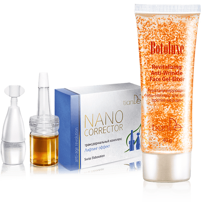 Задумалась об «уколах красоты»? Не спеши применять инъекционные методики – с помощью средств от TianDe ты сможешь отложить визит к косметологу! Трансдермальные комплексы с лифтинг- и ботокс-эффектом помогут тебе продлить молодость без болезненных ощущений! Они способствуют разглаживанию морщин, восстанавливают упругость кожи и четкий овал лица. Чтобы уход был всесторонним, TianDe подарит тебе ревитализирующий или экстраувлажняющий эликсир для лица! Условия Купи трансдермальный комплекс лифтинг- или ботокс-эффект – В ПОДАРОК гель-эликсир для лица против морщин ревитализирующий или экстраувлажняющий! 1 = 2 Количество товара ограниченно. Компания оставляет за собой право изменять условия и срок проведения акций.
