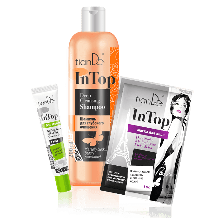 Впереди ждет романтическое свидание, а ты не уверена в своей безупречности? In Top позаботится о том, чтобы ты ни в чем не сомневалась! Косметика для лица, разработанная специально для молодой кожи, решит проблему жирного блеска и неровного тона, гель для интимной гигиены на основе натуральных ПАВ обеспечит комфорт и уверенность в себе, а средства для волос подарят тебе послушные и шелковистые локоны! Благодаря In Top ходить на свидания не только приятно, но и выгодно: в подарок ты получишь две маски для лица «Свидание во французском стиле» из этой же серии! Условия Купи два средства из серии In Top: гель для умывания, увлажняющий крем для лица, гель для век, шампунь, кондиционер для волос или гель для интимной гигиены – В ПОДАРОК две маски для лица «Свидание во французском стиле» из этой же серии! 1 + 1 = 4 Количество товара ограниченно. Компания оставляет за собой право изменять условия и срок проведения акций.