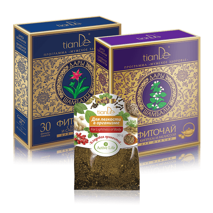 Осень – время уютных пледов, крепких объятий и, конечно, же, любимого горячего чая! Фиточаи от TianDe – это чистейшие травы и 100%-ная польза для организма! В нашей коллекции фиточаев ты обязательно найдешь свой любимый. Травы и плоды, входящие в их состав, собраны на Алтае – в одном из самых экологически чистых мест планеты. Благодаря специальной обработке сырья в напитках максимально сохранены витамины, макро- и микроэлементы. Заботиться о себе дождливой осенью не только приятно, но и выгодно – за покупку любимых фиточаев в подарок от TianDe ты получишь одну из трех кладовых пряностей! Условия Купи фиточай с кипреем и сабельником для мужчин "Дары Шамбалы" и с кипреем и мелиссой для мужчин "Дары Шамбалы" – В ПОДАРОК кладовая пряностей «Для легкости в организме»! 1 + 1 = 3 Количество товара ограниченно. Компания оставляет за собой право изменять условия и срок проведения акций.