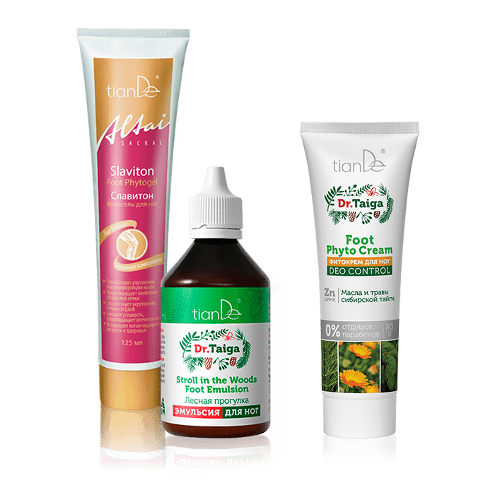 Ноги – наша опора, и от тщательного ухода зависит не только их красота, но и здоровье! Средства TianDe – это ключ к решению проблем: свежесть и легкость, профилактика капиллярной сетки… Ты будешь не ходить, а порхать – настолько легкой станет твоя походка! Условия Купи два средства: эмульсию для ног «Лесная прогулка» + фитогель для ног «Славитон» – В ПОДАРОК фитокрем для ног «Део-контроль»! 1 + 1 = 3 Количество товара ограниченно. Компания оставляет за собой право изменять условия и срок проведения акций.