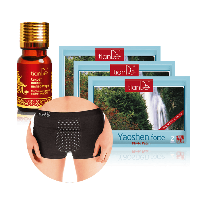 У китайских императоров были свои секреты сохранения и активации мужской энергии. Чтобы сохранять величие тела и духа, правители пользовались чудодейственными маслами, а лекари готовили для них специальные фитокомпрессы, благодаря которым даже к старцам возвращалась сила, а боль уходила прочь. Современным мужчинам, которые хотят сохранить свое величие и повысить потенциал своего «второго сердца», TianDe предлагает продукты, основанные на методах китайской традиционной медицины и современных научных технологиях. Только этой осенью целый комплекс «мужского здоровья» по привлекательной цене! Условия Купи масло массажное «Секрет покоев императора» + 3 упаковки фитопатча «Яошень форте» – В ПОДАРОК мужское нижнее белье с точечным нанесением турмалина! 1 + 3 = 5