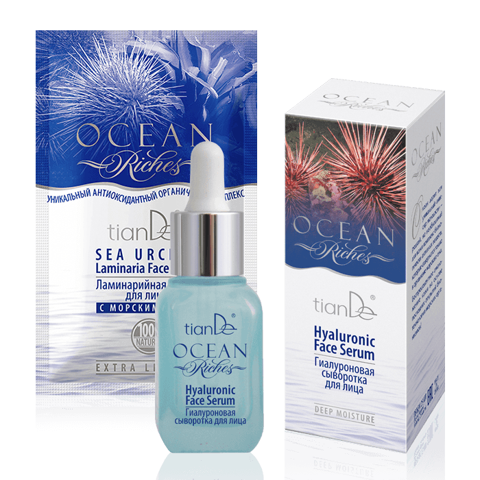 Твоя кожа достойна самого лучшего! Ocean Riches – это сокровища океана для твоей красоты! Роскошная серия с экзотическим компонентом, морским ежом, это эффективное омоложение, регенерация, увлажнение, упругость и тонус! Купив одно из средств серии, ты получишь на 100% натуральный продукт – ламинарийную маску для лица, которая дает видимый результат после первого применения! Условия Купи любое средство из серии Ocean Riches: гиалуроновую сыворотку для лица, флюид для век или увлажняющий праймер под макияж – В ПОДАРОК ламинарийная маска для лица с морским ежом! 1 = 2 Компания оставляет за собой право изменять условия и срок проведения акций.