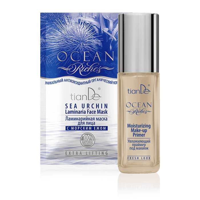 Твоя кожа достойна самого лучшего! Ocean Riches – это сокровища океана для твоей красоты! Роскошная серия с экзотическим компонентом, морским ежом, это эффективное омоложение, регенерация, увлажнение, упругость и тонус! Купив одно из средств серии, ты получишь на 100% натуральный продукт – ламинарийную маску для лица, которая дает видимый результат после первого применения! Условия Купи любое средство из серии Ocean Riches: гиалуроновую сыворотку для лица, флюид для век или увлажняющий праймер под макияж – В ПОДАРОК ламинарийная маска для лица с морским ежом! 1 = 2 Компания оставляет за собой право изменять условия и срок проведения акций.