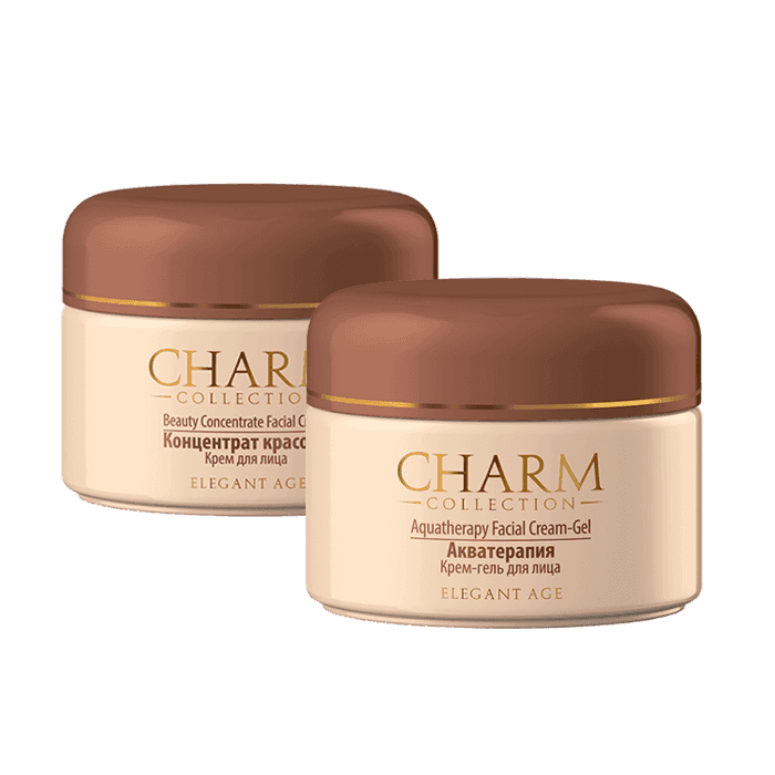 Женский шарм – особый секрет очарования. А после 45 лет он становится еще более элегантным! Дамы в этом возрасте знают себе цену и тщательно следят за своей внешностью с помощью люксовой косметики. Такой, как CHARM Collection! Эффективные бьюти-средства с топовыми компонентами в составе помогут коже сохранить молодость! Условия Купи крем-сыворотку для век от морщин или крем для лица «Концентрат красоты» – В ПОДАРОК крем-гель для лица «Акватерапия»! 1 = 2