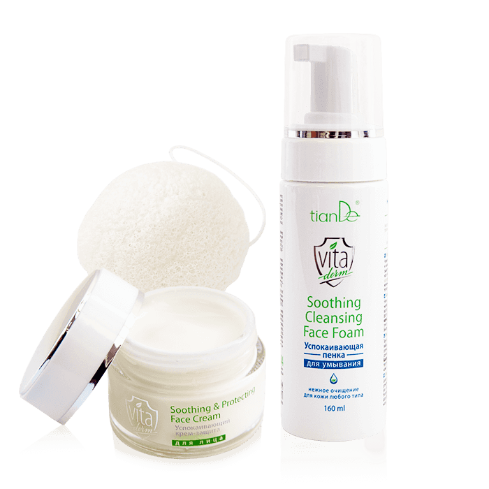 Vita Derm – это настоящий фитощит для твоей кожи! Целая линейка средств для бережного ухода за чувствительной кожей, а также восстанавливающий флюид с комплексом для защиты о HEV-излучения и «цифрового старения» будут нежно заботиться о твоей красоте и молодости. Только сейчас за покупку всего двух средств линейки – на 100% натуральный спонж «Конняку» в подарок! Условия Купи 2 любых продукта из серии Vita Derm (успокаивающий крем-защита для лица, для век, тонер для лица, пенка для умывания или восстанавливающий флюид-защита для лица) – В ПОДАРОК натуральный спонж «Конняку»! 2 = 3