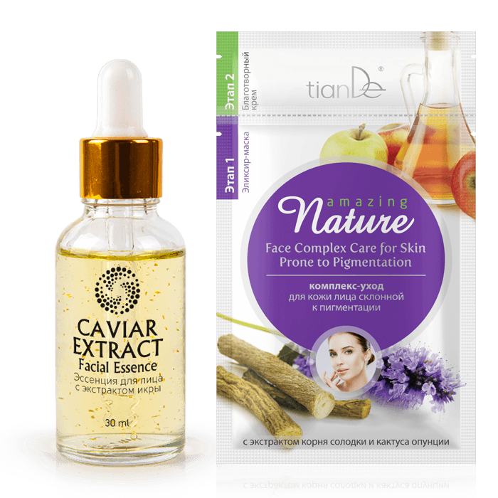 Эссенции с натуральными компонентами – это «умная» косметика, разработанная с использованием трендовых ингредиентов и инновационных технологий. Эссенции служат «проводниками» активных компонентов в глубокие слои кожи, с их помощью можно в домашних условиях качественно увлажнить и подтянуть кожу, придать ей упругость. Получи в подарок комплекс-уход Amazing Nature за покупку любой эссенции для лица. Условия Купи эссенцию для лица с экстрактом икры – В ПОДАРОК комплекс-уход для кожи лица, склонной к пигментации, из серии Amazing Nature! 1 = 2 Компания оставляет за собой право изменять условия и срок проведения акций.