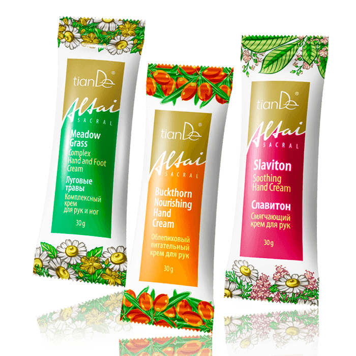 Кто, как не природа, заботится о нашей красоте и здоровье. Вся ее сила и сила растительных экстрактов заложена в линейку средств Altai Sacral. Ты можешь использовать кремы для рук и ног до последней капли благодаря удобной упаковке-саше. Это не вся выгода, которую ты получишь! Только этой осенью отдаем три эффективных крема по цене двух! Условия Купи 2 крема Altai Sacral: комплексный крем для рук и ног «Луговые травы» + смягчающий крем для рук «Славитон» – В ПОДАРОК облепиховый питательный крем для рук из этой же серии! 1 + 1 = 3 Компания оставляет за собой право изменять условия и срок проведения акций.