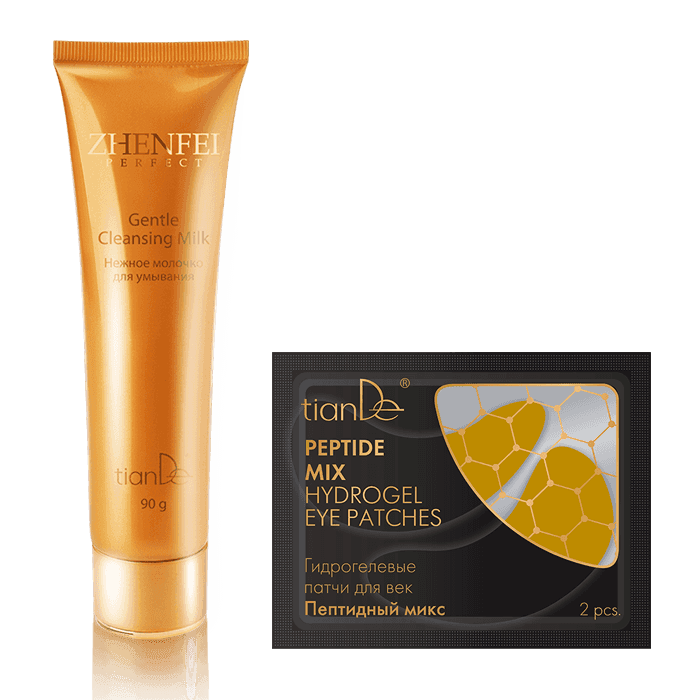 Открой для себя серию средств для ухода класса люкс! Zhenfei perfect – это богатый и эффективный состав с драгоценными маслами ши и жожоба, гиалуроновой кислотой, витамином Е, аллантоином, экстрактом лотоса, экстрактом водорослей и др. Дополни безупречную кожу свежим взглядом, который подарят патчи для кожи вокруг глаз! Приобретай любое средство из серии Zhenfei perfect – забирай в подарок эффективные гидрогелевые патчи! Условия Купи нежное молочко для умывания серии Zhenfei Perfect – В ПОДАРОК гидрогелевые патчи для век «Пептидный микс»! 1 = 2