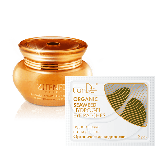 Открой для себя серию средств для ухода класса люкс! Zhenfei perfect – это богатый и эффективный состав с драгоценными маслами ши и жожоба, гиалуроновой кислотой, витамином Е, аллантоином, экстрактом лотоса, экстрактом водорослей и др. Дополни безупречную кожу свежим взглядом, который подарят патчи для кожи вокруг глаз! Приобретай любое средство из серии Zhenfei perfect – забирай в подарок эффективные гидрогелевые патчи! Условия Купи интенсивный крем - уход от морщин серии Zhenfei Perfect – В ПОДАРОК гидрогелевые патчи для век «Органические водоросли»! 1 = 2