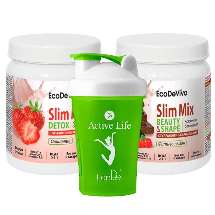 Поддержи организм белком, натуральными «спортивными» и «интеллектуальными» аминокислотами, антиоксидантами и витаминами. Попробуй новое поколение белковых коктейлей EcoDeViva! 2 коктейля – максимум полезных компонентов, снижение веса, поддержка организма и дополнительная энергия! Вдобавок ко всему этому ты получишь шейкер для коктейлей! Условия Купи 2 любых коктейля Slim Mix – В ПОДАРОК шейкер для коктейлей зелёного цвета! 1 + 1 = 3