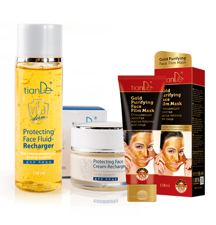 Что требуется коже зимой? Конечно же, надежная защита и интенсивное восстановление! Все средства из серии Vita Derm разработаны, чтобы оберегать кожу от вредных факторов, а также успокаивать чувствительную. Только сейчас, приобретая 2 эффективных восстанавливающих средства Vita Derm, в подарок ты получишь золотую маску-пленку для качественного очищения и ухода! Условия Купи 2 восстанавливающих средства серии Vita Derm: крем-защиту для лица + флюид-защиту для лица – В ПОДАРОК очищающая золотая маска-пленка для лица! 1 + 1 = 3