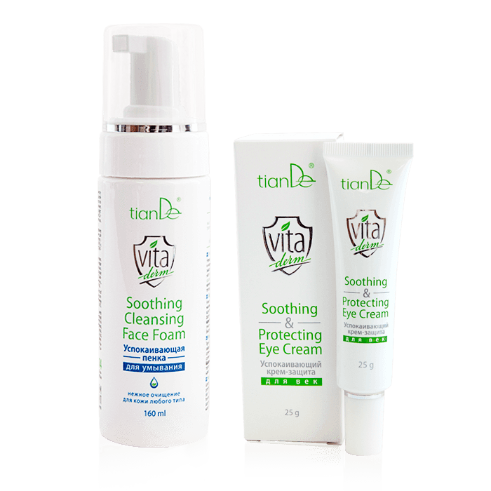 Твоей коже нужна защита? Используй фитощит! Активные компоненты средств серии Vita Derm помогут восстановить защитные кожные барьеры, успокоить раздраженную и воспаленную кожу, глубоко восстановить ее и защитить от солнечной активности. Позаботься о своей коже с выгодой для бюджета: забирай оба продукта по цене одного. Условия Купи успокаивающую пенку для умывания из серии Vita Derm – В ПОДАРОК успокаивающий крем-защита для век! 1 = 2