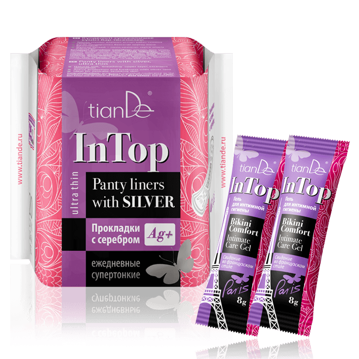 Для уверенных в себе молодых и амбициозных девушек идеально подойдут продукты из серии In Top. Воспользуйся отличным предложением и покупай выгодно! Приобретая ежедневные прокладки коллекции In Top с серебром, обладающим антибактериальным действием, в подарок получи два саше геля для интимной гигиены, в составе которого более 99% натуральных компонентов! Условия Купи прокладки с серебром ежедневные cупертонкие из серии In Top – В ПОДАРОК два саше геля для интимной гигиены из этой же серии! 1 = 3