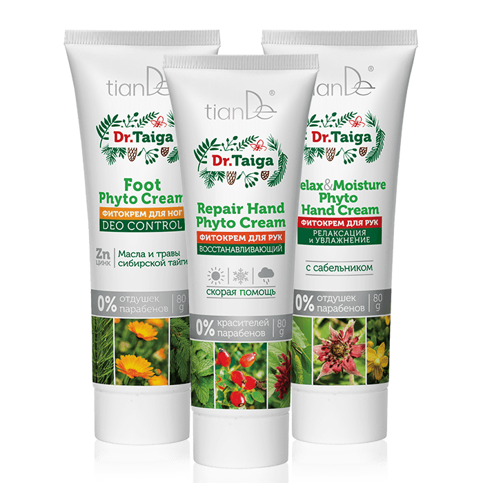 Подружись со всей серией средств для ухода за кожей рук и ног Dr. Taiga! Каждый продукт создан на основе сильных таежных растений. Восстанавливающий фитокрем для рук смягчит и напитает сухую и шелушащуюся кожу, «Релаксация и увлажнение» поможет снять усталость и дискомфорт при чрезмерных физических нагрузках, а фитокрем для ног «Део-контроль» поможет справиться с повышенной потливостью ног, подарит ощущение свежести. Забирай все 3 фитокрема по цене 2! Условия Купи 2 фитокрема из серии Dr. Taiga: для ног «Део-контроль» + для рук «Релаксация и увлажнение» – В ПОДАРОК восстанавливающий фитокрем для рук из этой же серии! 1 + 1 = 3