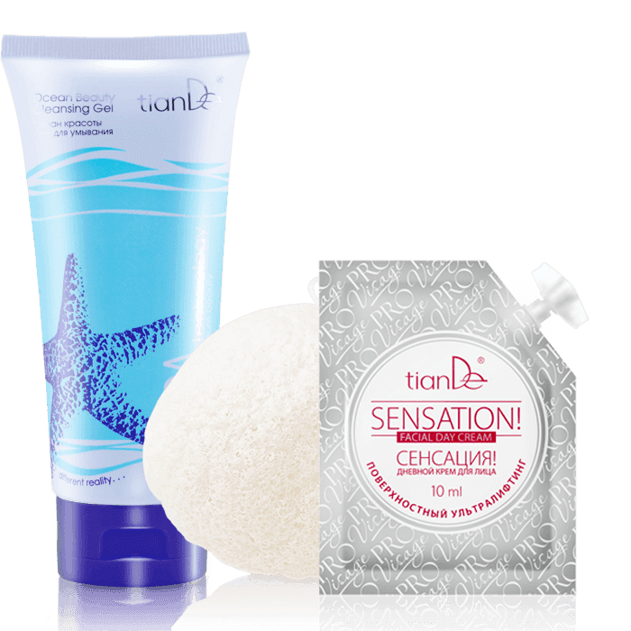 Подарить коже нежность и сияющий вид невероятно просто! Используй для деликатного очищения кожи лица гель для умывания из серии SPA technology. Хочешь усилить эффект? Воспользуйся натуральным спонжем «Конняку», который обеспечит легкий пилинг и массаж. При покупке такого эффективного набора ты получишь бонусом моментальный лифтинг-эффект – дневной крем для лица «Сенсация»! Условия Купи гель для умывания «Океан красоты» SPA technology + натуральный спонж «Конняку» – В ПОДАРОК дневной крем для лица «Сенсация»! 1 + 1 = 3