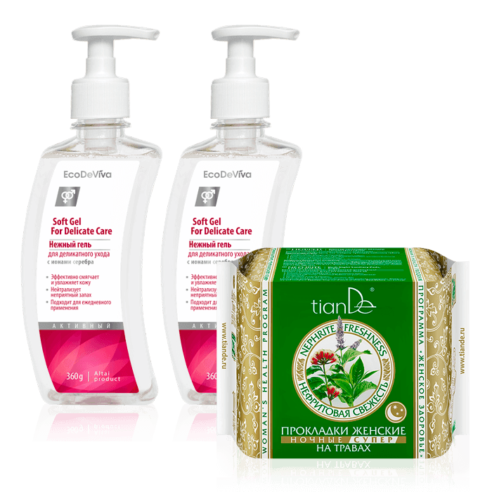 Выбирай заботу, которую ощущаешь! Нежный гель для деликатного ухода обеспечивает максимально бережное очищение, сохраняет рН, дарит ощущение свежести и нежный уход за интимными участками тела. Активные компоненты геля эффективно смягчают и увлажняют кожу, нейтрализуют неприятный запах. Это средство подходит и для женщин, и для мужчин, поэтому бери сразу два флакона и получай подарок – прокладки на травах «Нефритовая свежесть» ночные супер! Благодаря фитокомплексу в составе они защищают не только белье, но и женщину! Условия Купи 2 нежных геля для деликатного ухода – В ПОДАРОК прокладки женские на травах «Нефритовая свежесть» ночные супер! 1 + 1 = 3