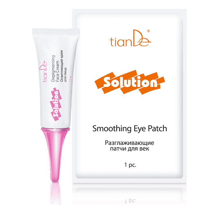 При покупке осветляющего крема для лица серии Solution – 2 упаковки разглаживающих патчей для век в подарок