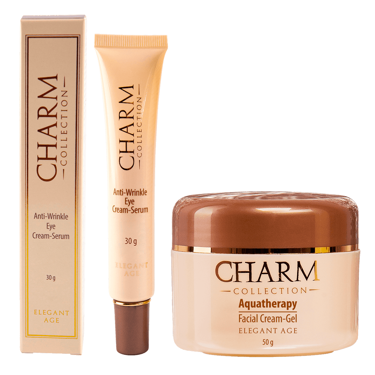 Женский шарм – особый секрет очарования! А после 45 лет он становится еще более элегантным! Дамы в этом возрасте знают себе цену и тщательно следят за своей внешностью с помощью люксовой косметики. Такой, как Charm Collection! Эффективные бьюти-средства с топовыми компонентами в составе помогут коже вспомнить молодость. Хочешь попробовать сразу два средства серии? Тогда это выгодное предложение для тебя! Условия Купи крем-сыворотку для век от морщин из серии Charm Collection – В ПОДАРОК крем-гель для лица «Акватерапия» из этой же серии!