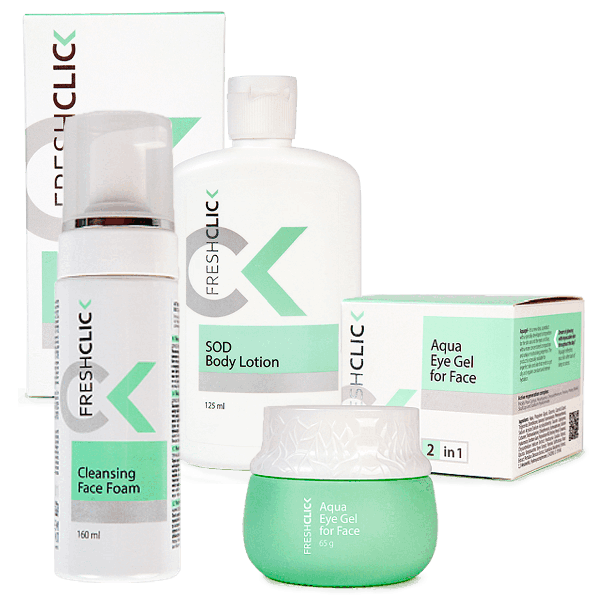 Косметическая линейка FreshClick разработана специально для молодой кожи. Каждый продукт – это сочетание современных технологий и «правильных» компонентов. В основе всех средств – восстанавливающий и увлажняющий комплекс для надежной защиты молодой кожи и ее регенерации. У тебя есть возможность попробовать сразу несколько средств серии с выгодой для бюджета! Условия Купи 2 средства серии FreshClick: пенку для умывания + аквагель для глаз и лица – В ПОДАРОК лосьон для тела SOD из этой же серии!