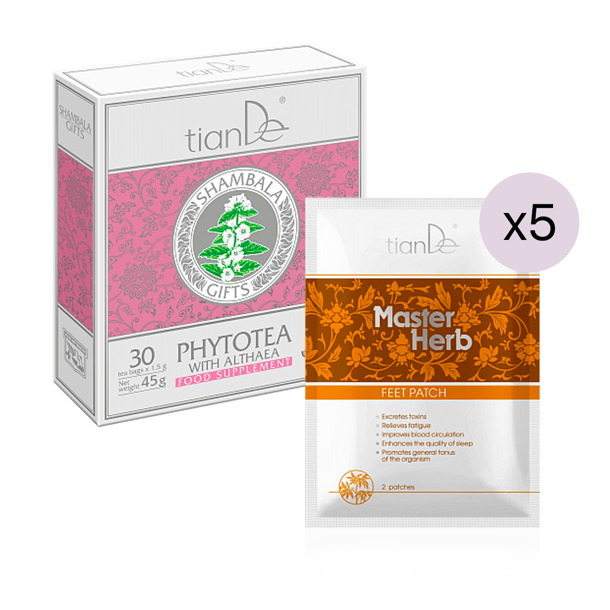 Поддерживать организм с арсеналом средств TianDe для отличного самочувствия просто! Например, пластырь для ног поможет избавиться от лишнего и обрести легкость. Полезный напиток – фиточай с алтеем – окажет всестороннюю поддержку, поможет пищеварению и обмену веществ. Воспользуйся выгодным предложением, чтобы получить больше пользы для организма! За пять упаковок пластыря – фиточай* в подарок! Условия Купи 5 упаковок пластыря для ног Master Herb – В ПОДАРОК фиточай с алтеем!* 5 = 6 * ПИЩЕВАЯ ДОБАВКА. ПИЩЕВАЯ ДОБАВКА НЕ ЗАМЕНЯЕТ ПОЛНОЦЕННОГО И СБАЛАНСИРОВАННОГО ПИТАНИЯ.