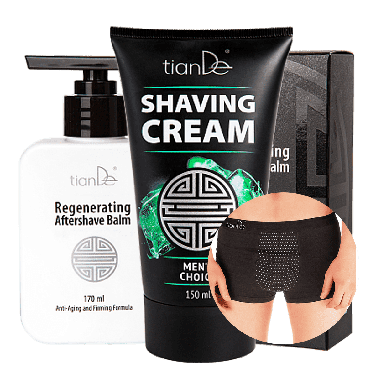 Эффективные средства For men от TianDe разработаны с учетом особенностей мужской кожи для настоящих победителей. Крем для бритья и восстанавливающий бальзам после бритья обеспечат коже идеальный комфорт. Забирай два средства и получи в подарок мужское нижнее белье с точечным нанесением турмалина для мужской силы и уверенности! Условия Купи крем для бритья + восстанавливающий бальзам после бритья – В ПОДАРОК мужское нижнее белье с точечным нанесением турмалина! 1 + 1 = 3