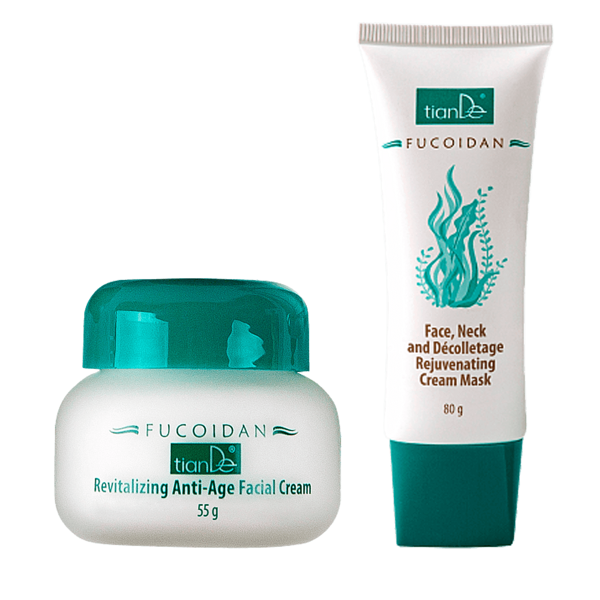 Фукоидан – полисахарид из бурых водорослей, мощный антиоксидант, состоящий из фукозы, а также главный компонент одноименной косметической линейки от TianDe. Средства серии способствуют регенерации тканей, замедляют процессы старения и возвращают коже упругость. Восстанавливающий антивозрастной крем и омолаживающая крем-маска – бери сразу два средства по цене одного! Условия Купи восстанавливающий антивозрастной крем для лица – В ПОДАРОК омолаживающая крем-маска для лица, шеи и зоны декольте! 1 = 2