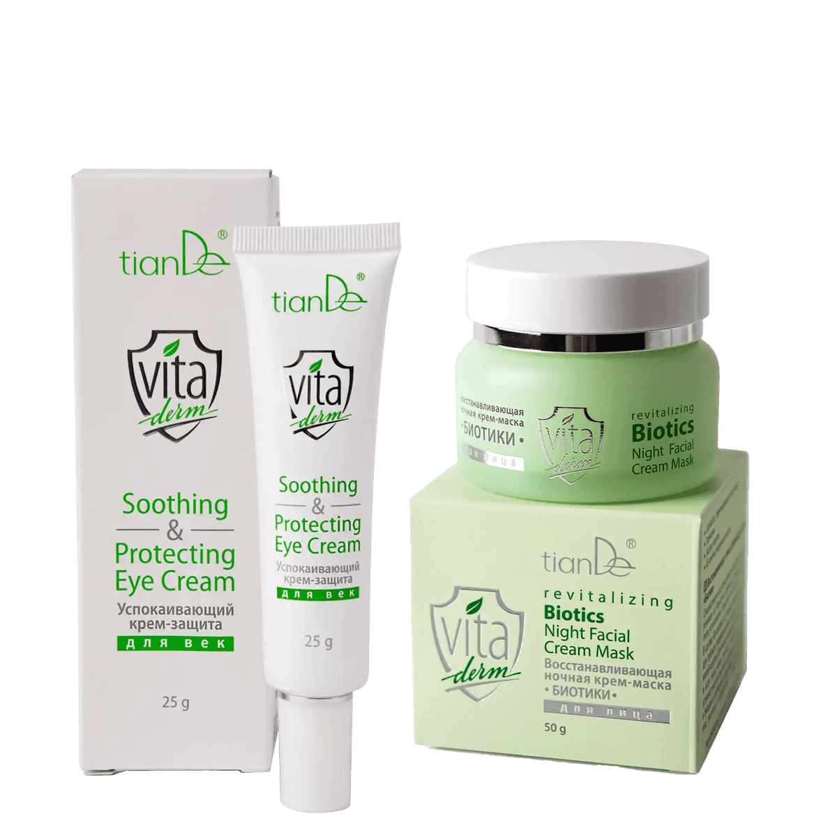 Краснота, дискомфорт, воспаление… Кожа капризничает? Восстанови баланс с помощью косметических средств для чувствительной кожи из коллекции Vita Derm. Продукты серии успокоят кожу, помогут восстановить ее микробиом, обеспечат надежную защиту. Забирай два средства Vita Derm по выгодной цене! Купи восстанавливающую ночную крем-маску для лица «Биотики» – В ПОДАРОК успокаивающий крем-защита для век! 1 = 2