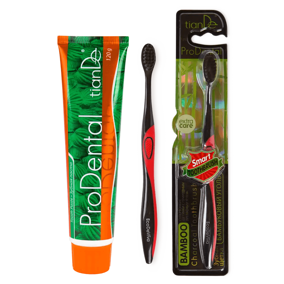 От чего зависит здоровье зубов и десен? От регулярного ухода и качественных средств гигиены! Эксклюзивная зубная паста «Проденталь» с пептидами оказывает комплексное воздействие, укрепляет ткани пародонта и эффективно снижает кровоточивость десен! Используй ее в комплексе с зубной щеткой «Бамбуковый уголь». Ее супертонкие щетинки с природным древесным углем отлично очищают и подходят даже при повышенной чувствительности зубов и ослабленных деснах. Условия Купи зубную пасту «Проденталь» – В ПОДАРОК зубная щетка «Бамбуковый уголь»! 1 = 2