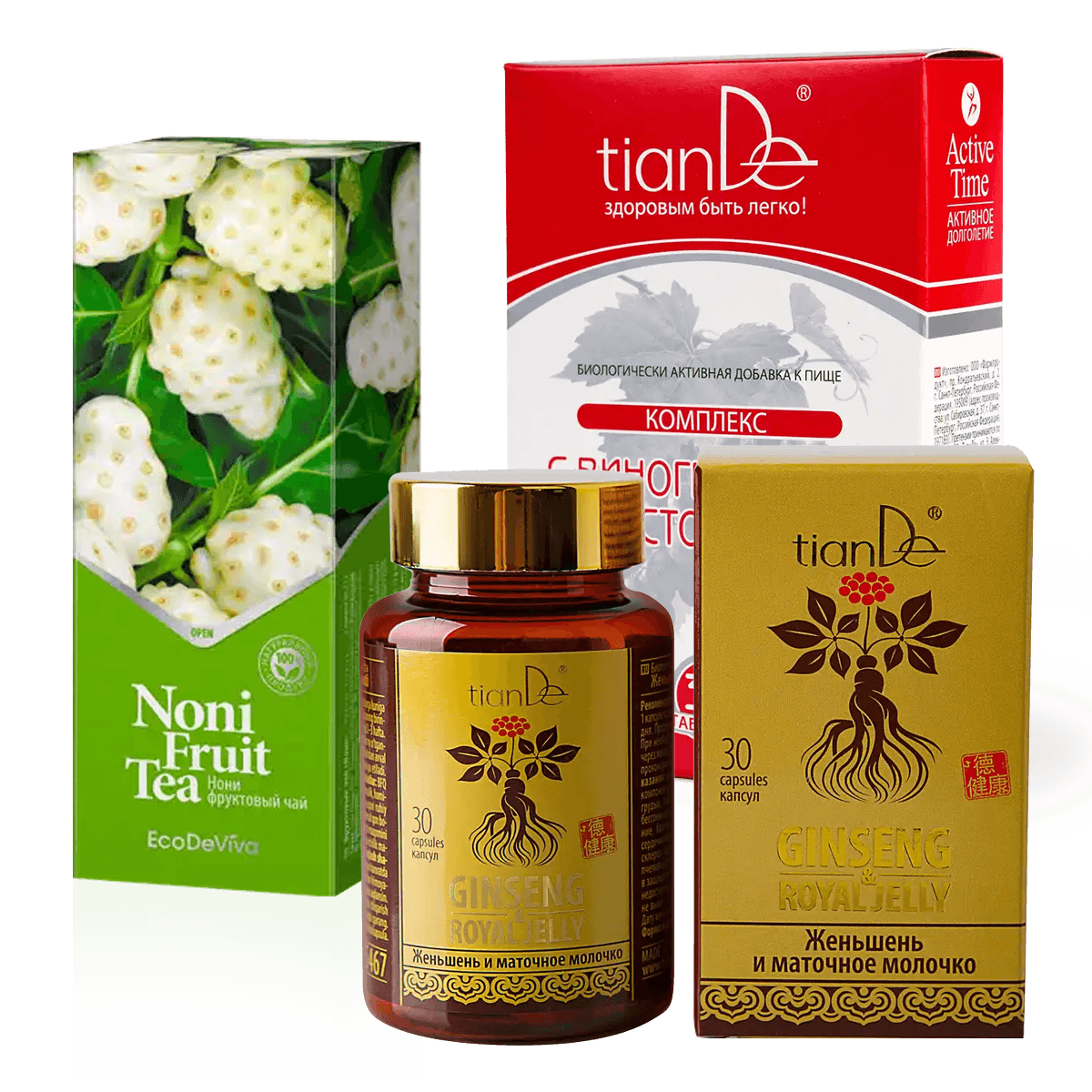 Поддерживай свой организм натуральными средствами от TianDe! Фруктовый чай «Нони», на 100% состоящий из одноименного фрукта-суперфуда, подарит заряд отличного настроения и позаботится об иммунитете. «Комплекс с виноградными косточками»* будет защищать клетки от свободных радикалов, укреплять сердечно-сосудистую систему и поддерживать молодость, а «Женьшень и маточное молочко»* вернет яркость и активность жизни! Весь комплекс – по привлекательной цене! Условия Купи фруктовый чай «Нони» + БАД к пище «Комплекс с виноградными косточками»* – В ПОДАРОК БАД к пище «Женьшень и маточное молочко»*! 1 + 1 = 3 БАД. Не является лекарством. На территории РФ маркированные товары можно приобрести только с онлайн-оплатой или частичной оплатой с бонусного счета.